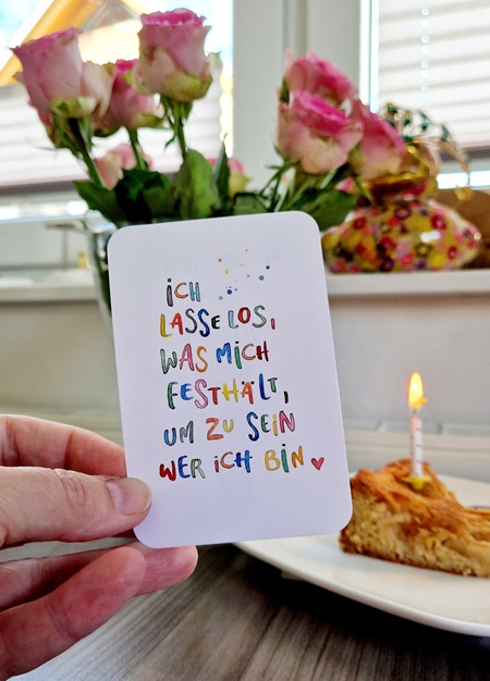 Diese Erkenntnis war eigentlich total nah. Jeden Morgen hab ich die Message auf der Karte (hier* findest du das großartige Kartendeck), die ich zu meinem Geburtstag gezogen habe, unterbewusst gelesen. Trotzdem hat es ein halbes Jahr gedauert, bis ich es verstanden habe. (Brett vor’m Kopf, und so…)